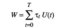 M 1.10. But for our purposes nothing is lost by specifying an overall wellbeing function that is a linear function of fulfillment in each time period where tt represents the individual's subjective rate of time discount for fulfillment in period t. So W is a linear function mapping elements in Â(T+1) to  .