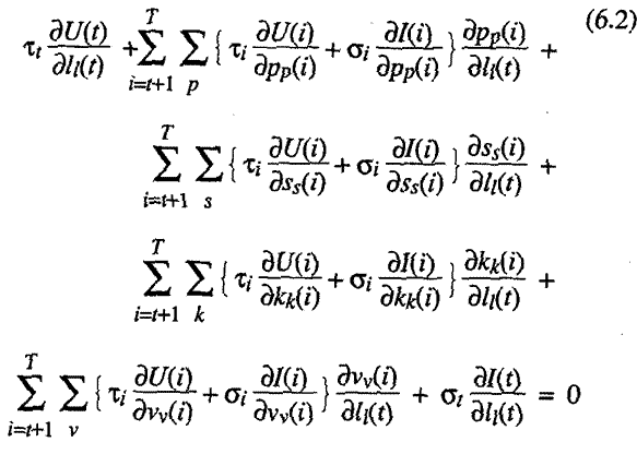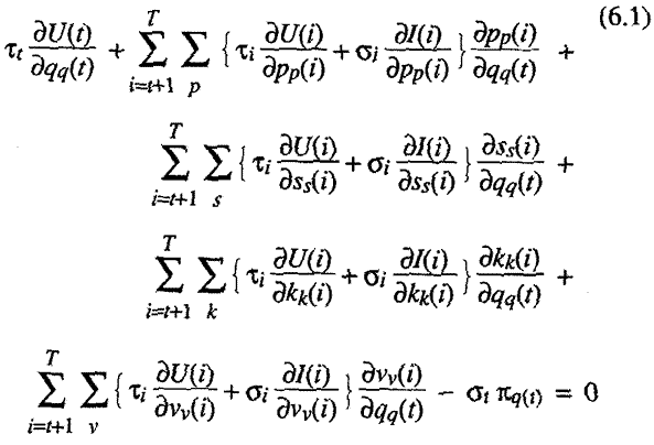 where pi(t) is the price the individual must pay for a unit of good i in period t, and the nonsatiation axiom justifies the equality. Or, using vector multiplication