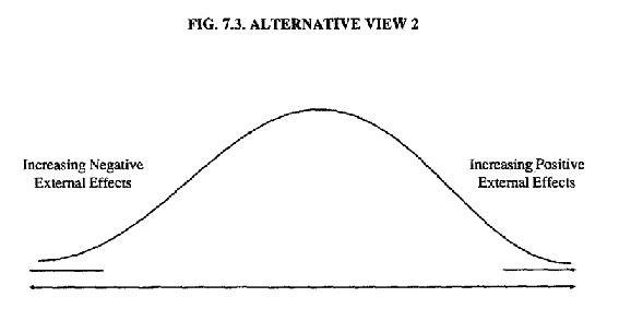 Finally, we will discover that it is the unevenness of external effects, more than their existence, that makes it difficult to construct desirable economic decision-making mechanisms. Our paradigm emphasizes not only the high likelihood of the prevalence of external effects, but the unevenness of those effects as well. The breadth of the net of effects cast by any particular decision and action can fall any place on a continuum ranging from zero effects on others to equally powerful effects on all. As we will see, it is unfortunate for simple economic decision-making mechanisms (like markets and central planning) that there is every reason to believe that the degree of external effects of most economic decisions falls somewhere between the two extremes.
