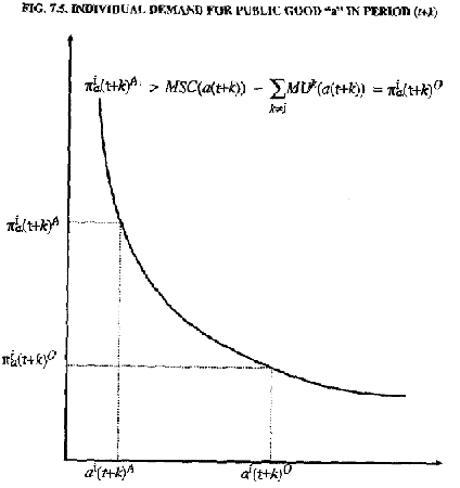 In figure 7.5 we formulate the situation for period (t+k) to apply our theorems from chapter 6 directly. As can be seen, the actual supply price to individualsthe price that will be charged buyers under market allocations of goods with positive external effects-yields individual demands for the good, ai(t+k)A, that are less than the optimal individual demands would be, ai(t+k)O. If we compare this situation with the situation with a good displaying no (or less) positive external effects we can formulate the following useful theorem: