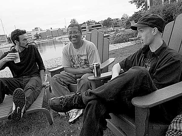 Of course, classes are in living rooms, dens, community halls, sheds, and, some years, even in kitchens, which makes for a more informal atmosphere. Plus, we’re surrounded by water and science buildings and ships and boats of all sizes so somehow it all seems to work because the humor and good natured participation is evident from the first evening’s orientation through what’s become known as "Chomsky Day" through a hip-hop performance on participatory economics by Lonnie Atkinson (ZMI 2003) through the night when students and faculty tell moving (and humorous) accounts of why they became radical and what keeps them going through the entertaining and talented project group presentations at graduation. The photos included here tell the story.