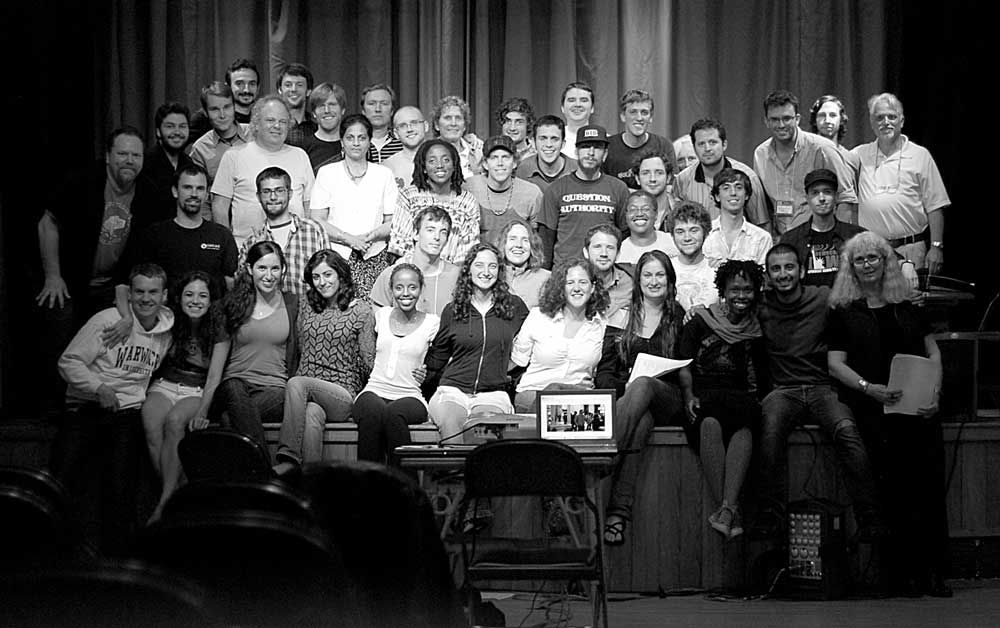 When we started ZMI in 1994, it was a yearly event until 1999 when we changed it to every other year, mainly because it’s a lot of work. This year’s ZMI was as fantastic as all the others have been, perhaps more so. Forty-five students came from all over the U.S., as well as Canada, Spain, France, Finland, Latvia, the UK, India, and Bangladesh. They arrive exhausted and then we ask them to spend eight days attending classes from 8:45 AM until 10:00 PM (see sample schedule). In addition, we ask them to become part of a student media or organizing project group with the task of creating a model institution, the details of which they will present to us on the final night—both in print of video format, combined with a dramatization or musical accompaniment.
