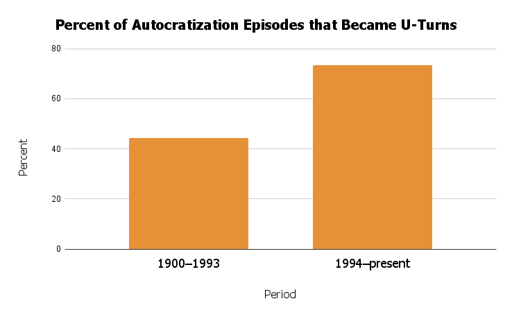 Figure 1. Source: Nord et al., “When Autocratization is Reversed: Episodes of U-Turns Since 1900,” 2025