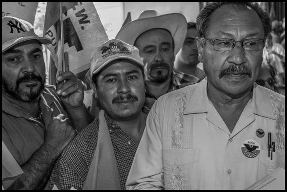 “While union contract wages are generally much higher than the minimum wage, the UFW faces a daunting challenge in trying to raise the income of farm workers across the board. Meanwhile, the contested terrain between growers and the union is changing rapidly. For several decades corporate growers have been globalizing their operations, growing fruit and vegetables in many countries. At the same time, as trade agreements like NAFTA have displaced poor rural communities in Oaxaca and elsewhere, farmers have come to the U.S. looking for work and survival. “We have a mostly undocumented workforce, and no immigration reform in sight,” Rodriguez says. “Growers are running away to Mexico and elsewhere. It’s a huge problem.”