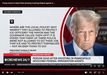 As millions around the world, fresh off watching real-time footage of federal law enforcement murdering Renee Good, saw federal agents murder Alex Pretti, CBS viewers got a headline (1/24/26): “Person Dead After Shooting in Minneapolis Involving Federal Immigration Agents.”