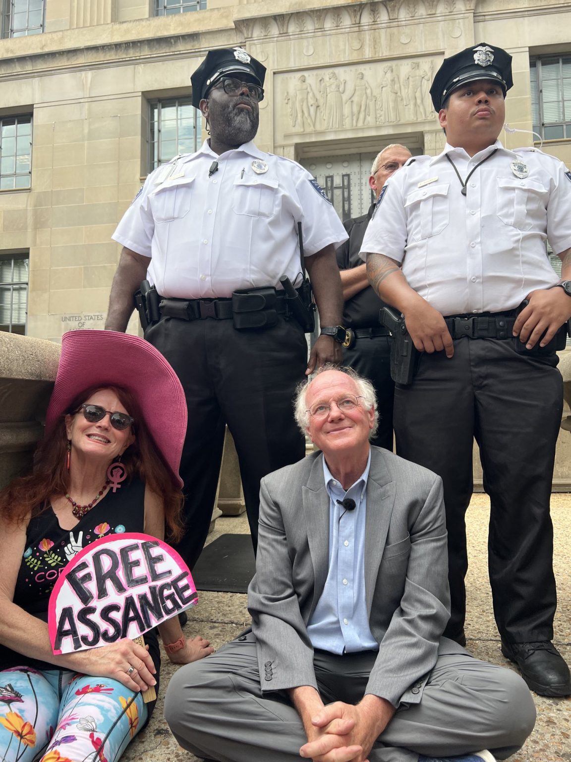 WASHINGTON – Ben Cohen, co-founder of Ben & Jerry’s, and Jodie Evans, co-founder of CODEPINK, have been arrested for blocking the entrance to the Department of Justice. Cohen and Evans arrived in Washington, D.C. to protest the US government’s prosecution of Wikileaks publisher Julian Assange, who has been indicted on 18 charges for the publication of the Afghan War Diary and the Iraq War Logs, which uncovered war crimes, torture, and civilian deaths perpetrated by the US government.