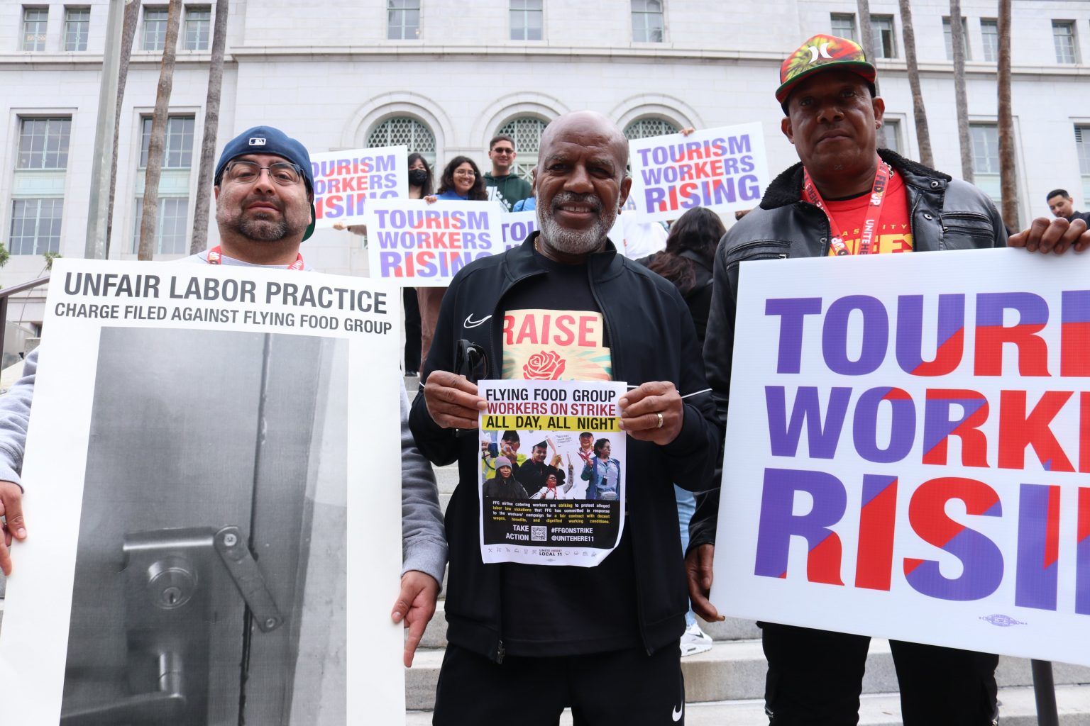 Workers for the Flying Food Group (FFG) plant in Inglewood, California are on strike, demanding a living wage, a decent pension, the retention of their health benefits, and their dignity as workers. Represented by UNITE HERE Local 11, the 350 workers at the plant voted overwhelmingly (99 percent) on March 15 to authorize a strike action against their employer, and they went out on strike on April 11.