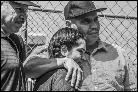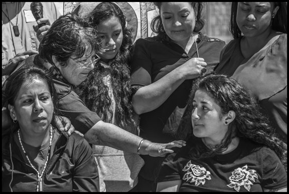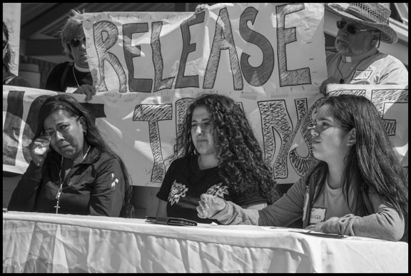 Hulissa Aguilar came to a vigil to ask for help to get her father Hugo released.Ā After raising the bond and getting him out, the family was reunited at the last vigil, together with Hugo’s sister Isela and brother Gonzalo.