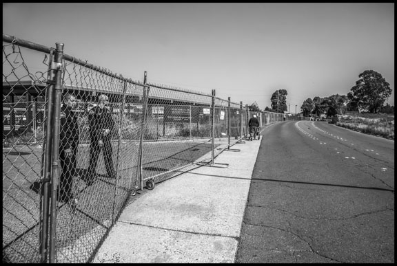 The Sherriff put up a fence to keep vigil participants out of the parking lot and away from the detention center, after he was forced by county supervisors to end the contract with ICE to run it.