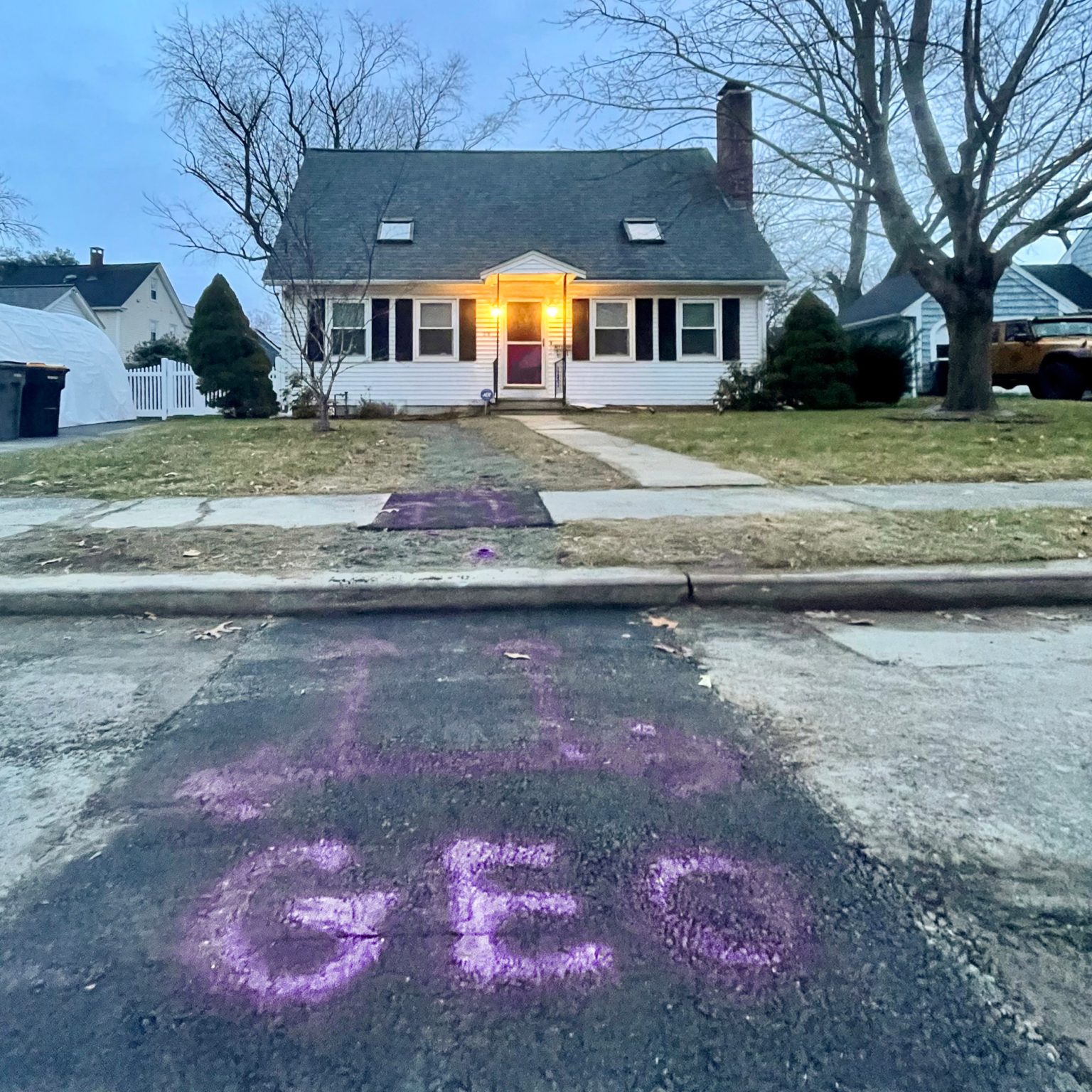 Purple spray paint marks the geothermal system in Framingham, Massachusetts. Credit: Courtesy of HEET