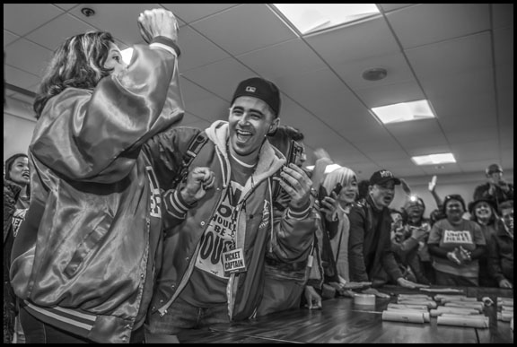 Happy over the gains in the contract ending the strike, strikers turn their vote on the agreement into a kind of celebration.