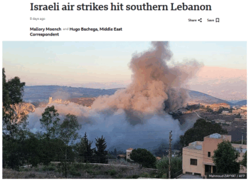 The BBC (9/18/25) was one of the few corporate outlets that managed to find a bit of space for these events, under the headline, “Israeli Air Strikes Hit Southern Lebanon.” The outlet noted that