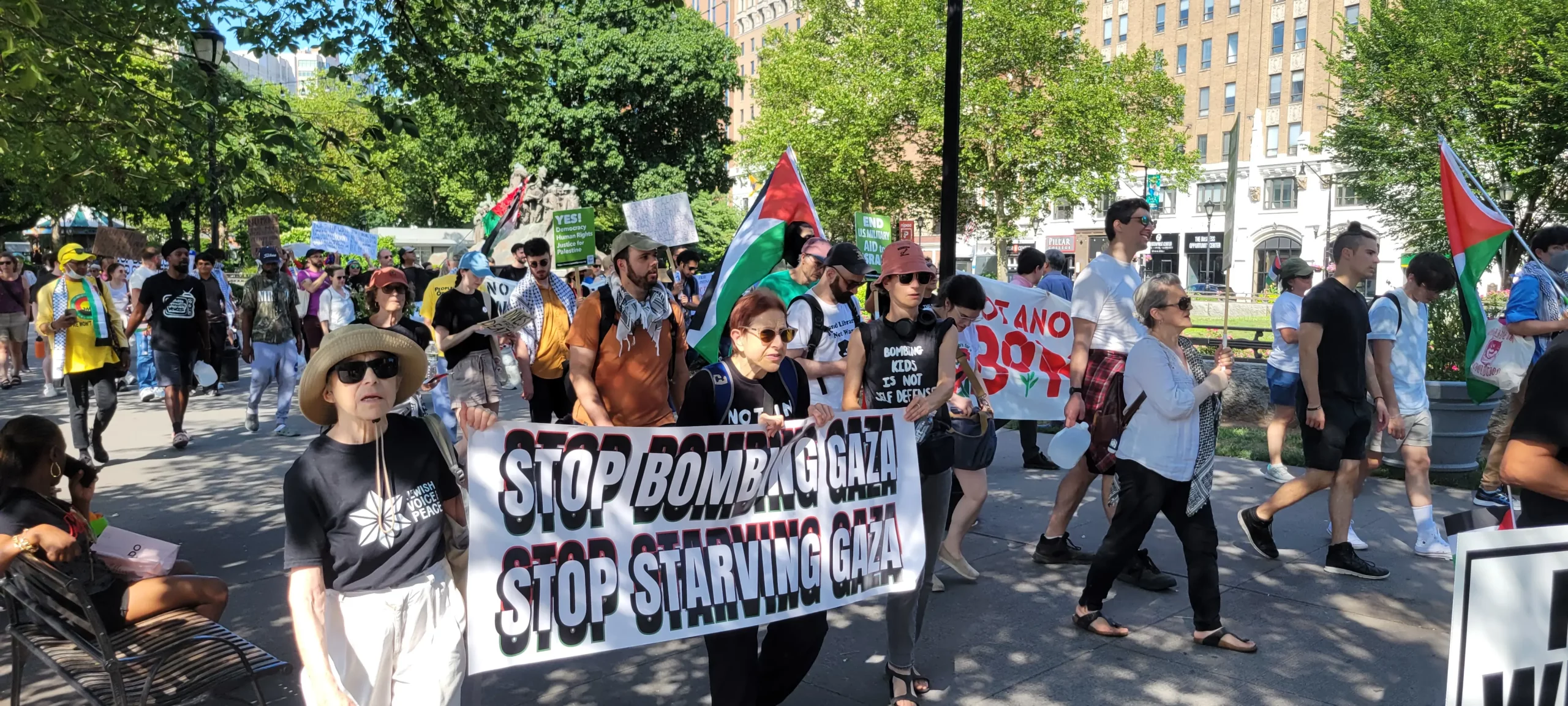 On July 13, roughly 100 people convened in Military Park in Newark, New Jersey for the launch of Break the Bonds, a new statewide campaign in solidarity with Palestine. Inspired by the BDS Movement — a call from Palestinian civil society organizations to boycott and divest from Israel’s economy — the activists in New Jersey vowed to get their state to divest from Israel Bonds. These bonds, as organizers explained, are direct loans that individuals and institutions make to the Israeli treasury, enabling its ongoing genocide in Gaza and broader oppression of Palestinians.