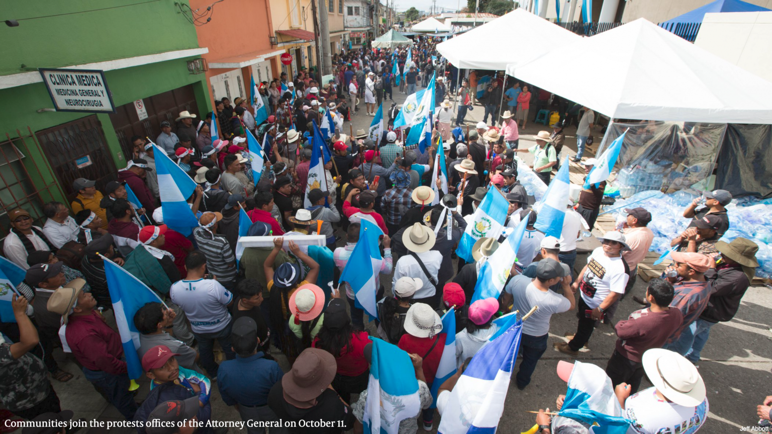The crumbling, pothole-filled highways and roads across Guatemala have been shut down, blocked, and barricaded by protesters for more than a week . These protests in defense of democracy and against the country’s embattled Attorney General María Consuelo Porras, and her anti-impunity prosecutor Rafael Curruchiche, show no sign of slowing down, despite the threats of the deployment of riot police and the violence from groups that have infiltrated the protests.