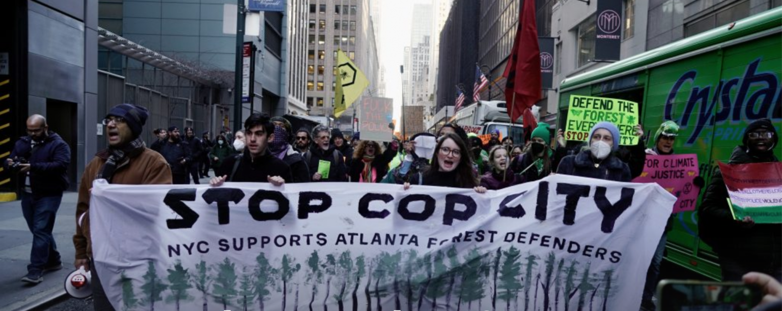 At least 42 people have been charged with domestic terrorism carrying up to 35 years in prison, 23 of them swept up during a March 5 mass arrest after a subset of activists allegedly broke off from a music festival in the park and set equipment at a training center construction site on fire. Some also allegedly hurled fireworks and Molotov cocktails at police. Law enforcement, failing to apprehend specific individuals at the site itself, indiscriminately targeted festivalgoers with arrest.