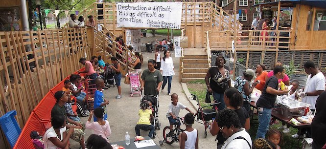 My perspective comes from living between the art and organizing worlds. When it comes to an artwork like Thomas Hirschhornās Gramsci Monument from a few years ago, my first reaction is sometimes an eye-roll. But then Iāll talk to someone who lives in the Bronx about how theyāre going to give a talk there about their brother who is in prison. Thatās the thing about art: symbolic gestures can sometimes be very real for people. Frederic Jameson, quoting Kenneth Burke, talks about how the term āsymbolic actā has a double meaning: both, āOh, itās just a symbolic act,ā as well as, āThatās a symbolic actāāthatās a meaningful intervention in the symbolic sphere.