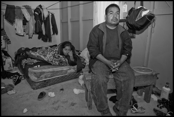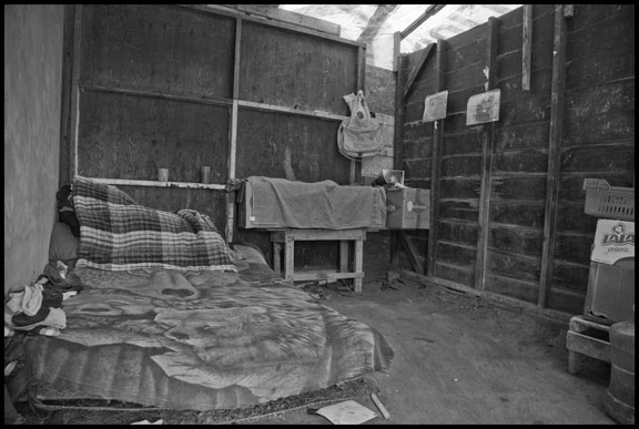 Felimon Piñeda and his wife Francisca Mendoza in their cabin in Labor Camp #2, during the strike at Sakuma Farms, Burlington, Washington. “I’ve heard the story of the Isrealites in Egypt, who were slaves for 400 years, and treated badly,” he says. “God saw how they were treated and heard their cries, and sent them Moses to free them and take them to the promised land. I see our strike like that. The bosses are like the Egyptians, and just pay us what they want. We’re like the Israelites, wanting to be free.”