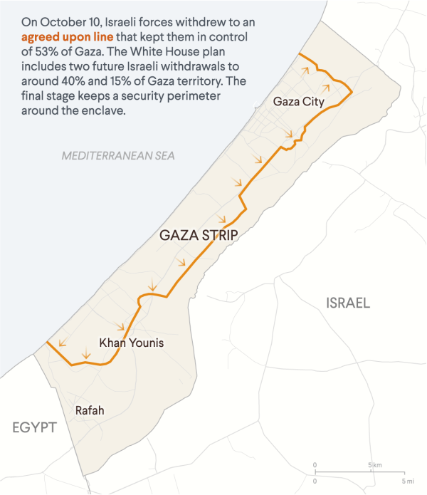 To reach the aspirational goals, the plan offers little guidance, except for the formation of an International Stabilization Force; technocratic transitional governance by a Palestinian committee, under an international board chaired by Trump and led by the controversial former British Prime Minister Tony Blair; demilitarization by an independent monitor group; and economic reform by a panel of experts.