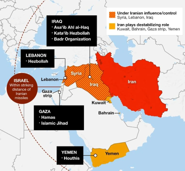 Western view of Iran’s influence in the Middle East.
