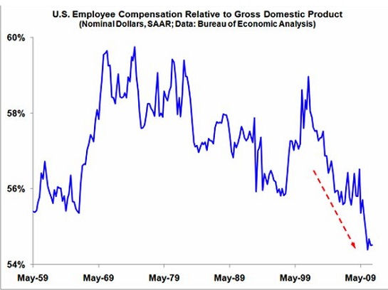 Domestically the brutal failure of government is evident in the way working Americans are treated. The high levels of unemployment are not the only story; four decades of stagnant incomes and decreasing share of the gross domestic product going to workers are long term trends; the fragility of peoples’ personal finances, record foreclosure, high student debt and the lack of control over our economic lives all show the need for an economic transformation to a new, democratized economy.