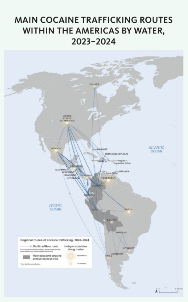 Drug monitoring data also contradict this narrative. The Washington Office on Latin America (WOLA) reports that only about 7 percent of U.S.-bound cocaine transits through the Eastern Caribbean via Venezuela, while approximately 90 percent takes Western Caribbean and Eastern Pacific routes. UNODC’s 2025 World Drug Report likewise confirms that trafficking remains concentrated in major Andean corridors, not through Venezuela. Yet Venezuela is targeted anyway, not for its actual role in the drug trade, but because neutralizing its government has become a pillar of U.S. foreign policy, seen in Washington as a step toward reshaping the country’s political system and prying open its economy to foreign control.