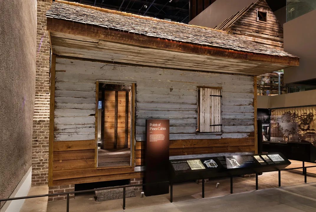 There, beneath the bright mall of Washington, sits a small wooden house: the Point of Pines cabin, carried from Edisto Island, South Carolina, and rebuilt plank by plank. The whitewashed boards and low hearth make history unavoidably physical. People once slept here, worked here, prayed here—inside a system designed to erase their humanity. This is what the museum’s “Slavery & Freedom” exhibition does so relentlessly well: it forces truth to stand in front of you.