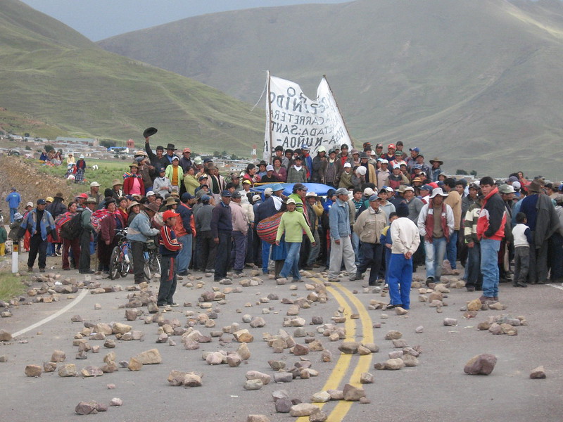 In village after village along the boulder-strewn highway, the message was the same, as disillusioned and downtrodden farmers gathered by their blockades to offer impassioned speeches about the state of their nation and how their resource-rich mining region had been milked for profits that were never seen.