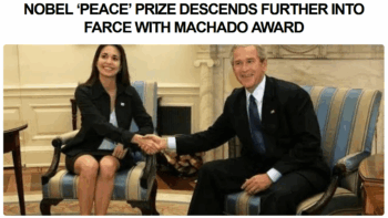 The Nobel Peace Prize has long lost any credibility when it comes to upholding actual peace. With Machado’s award, it followed a recent tradition of aligning itself with Western foreign policy. And even more predictable was the corporate media seizing the opportunity to advance its war and regime-change propaganda against Venezuela.