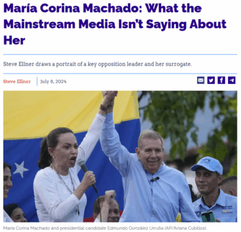 Looking past the undemocratic debut, establishment journalists instead started the story with the mid-2002 creation of Súmate, calling it an NGO dedicated to election monitoring or transparency (Bloomberg, 10/10/25; Washington Post, 10/10/25; Reuters, 10/10/25; New York Times, 10/10/25). Yet they did not mention that this alleged quest to safeguard democracy was funded by the US, or that the opposition made unfounded fraud claims after failing to unseat Chávez in a 2004 recall referendum (Venezuelanalysis, 8/21/04, 9/9/04).