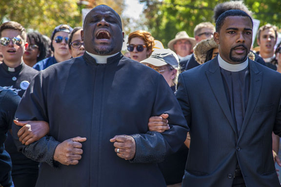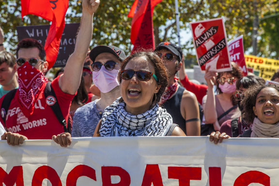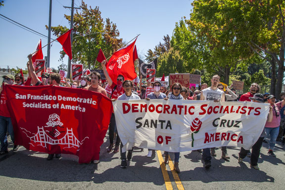In the confrontations between a tiny number of white supremacists and a very small number of demonstrators, the photographers who chased them sometimes outnumbered those involved. At those same moments, hundreds of Black, Latino, Asian and white church people were marching up Martin Luther King Jr. Way. The two banners of the Democratic Socialists of America (one all the way from Santa Cruz) stretched across the four lanes of the avenue. Where were the photographers? In San Francisco thousands marched up Market Street. I saw fewer photographers there than at any march in recent memory.