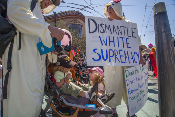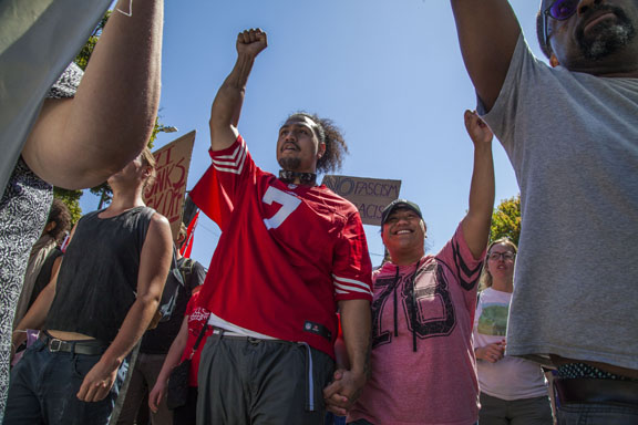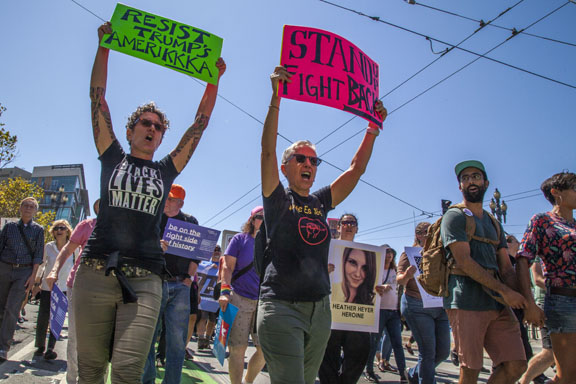 Relying on the photographs, reporting and video in the mainstream media can give you a false idea about the marches and demonstrations against white supremacists and Nazi sympathizers in San Francisco and Berkeley last weekend. The newsroom adage says, “if it bleeds it leads.” But screaming headlines about violence, and stories and images focused on scuffles, were not a good reality check.