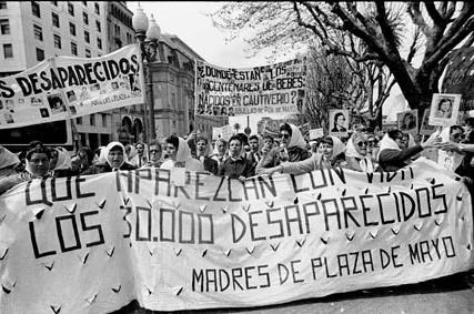- Vigils for the disappeared. Beginning in 1977, the Mothers of Plaza de Mayo in Argentina have held weekly vigils protesting the US-backed military dictatorship that disappeared their children without trials or judicial process. Between 1970 and 1980, more than 8,500 people became “Desaparecidos.” Some of the women leading the vigils were themselves kidnapped and thrown out of planes to drown in the sea. Today mothers continue weekly vigils in Plaza de Mayo as they have since 1977. Now in the US, interfaith groups have begun holding vigils as “Godmothers of the Disappeared.” Taking a page from the mothers in Argentina, they wear white and carry signs with photos of people whom ICE has disappeared.